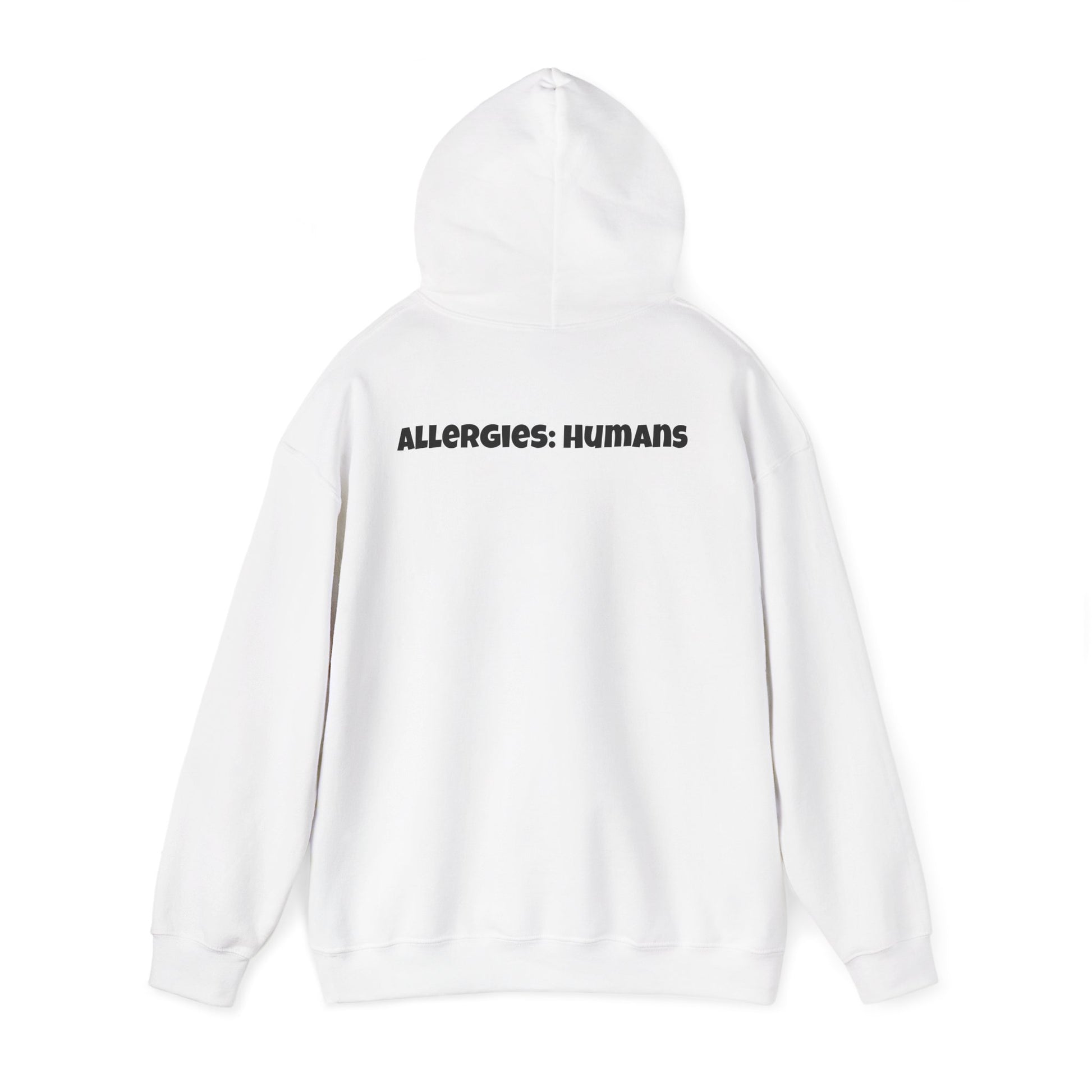 Our ALLERGIES: HUMANS hoodie is for people who love comfort but tolerate people… selectively. Clean white, bold stencil lettering, zero small talk. It’s soft, roomy, and socially exhausted — just how we like it.