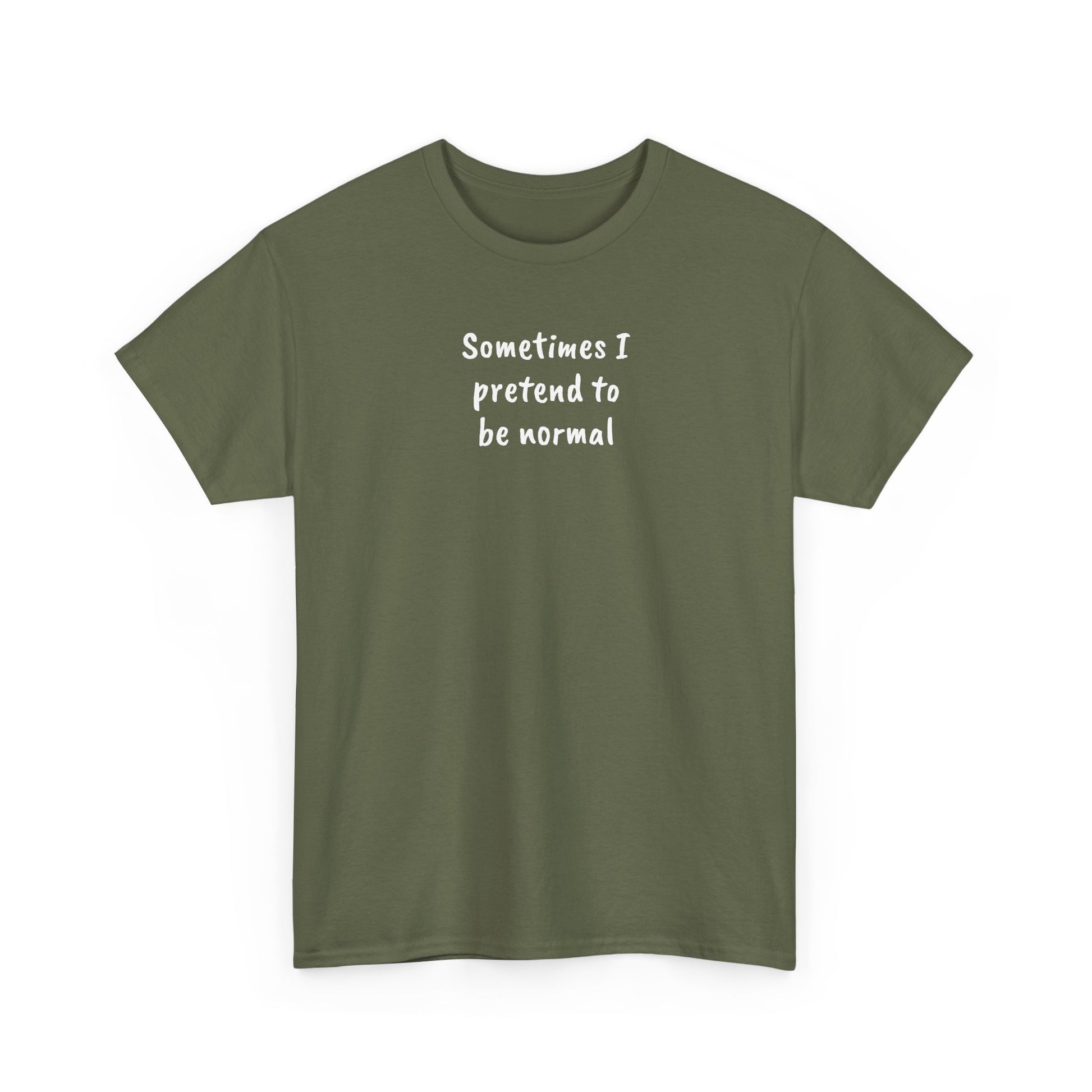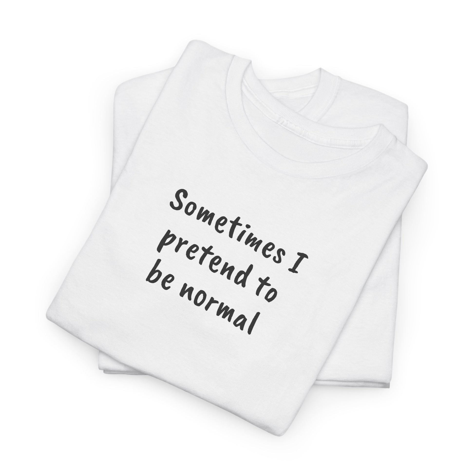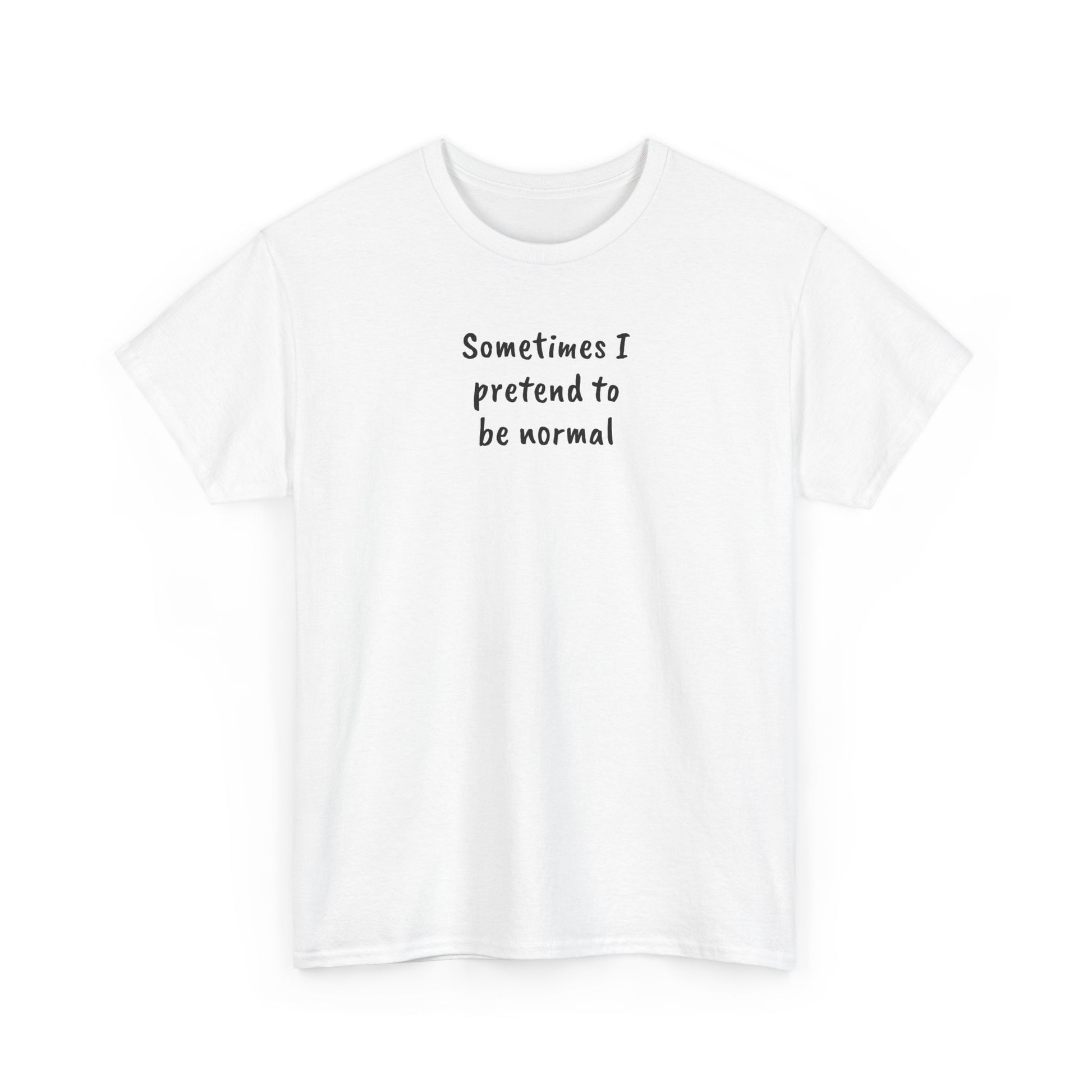 Soft, simple, and doing its absolute best, this classic tee tells the truth: Sometimes I pretend to be normal. With a relaxed fit and comfy crew neckline, it’s made for errands, social situations, and convincing exactly no one. The low-key message feels like an inside joke, while the quality cotton holds its shape through all the emotional support washes this shirt will inevitably face.